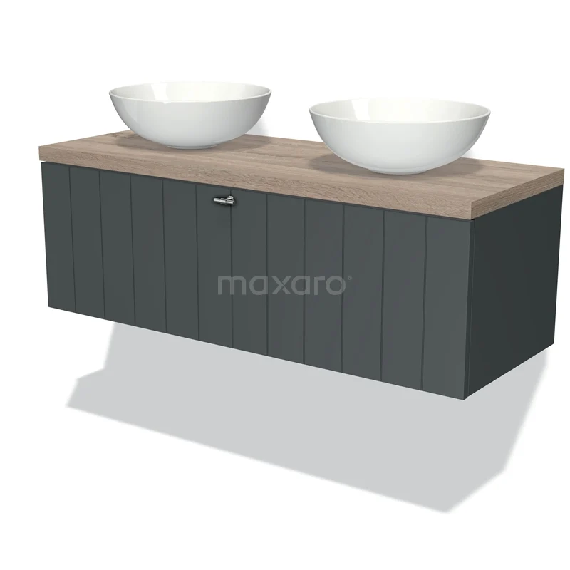 Modulo Plato Vanity units for countertop basin | 120 cm Dark grey Slat front Oak worktop 1 drawer