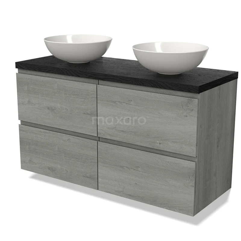 Modulo Plato Vanity units for countertop basin | 120 cm Grey oak Bordered front Black oak worktop 4 drawers
