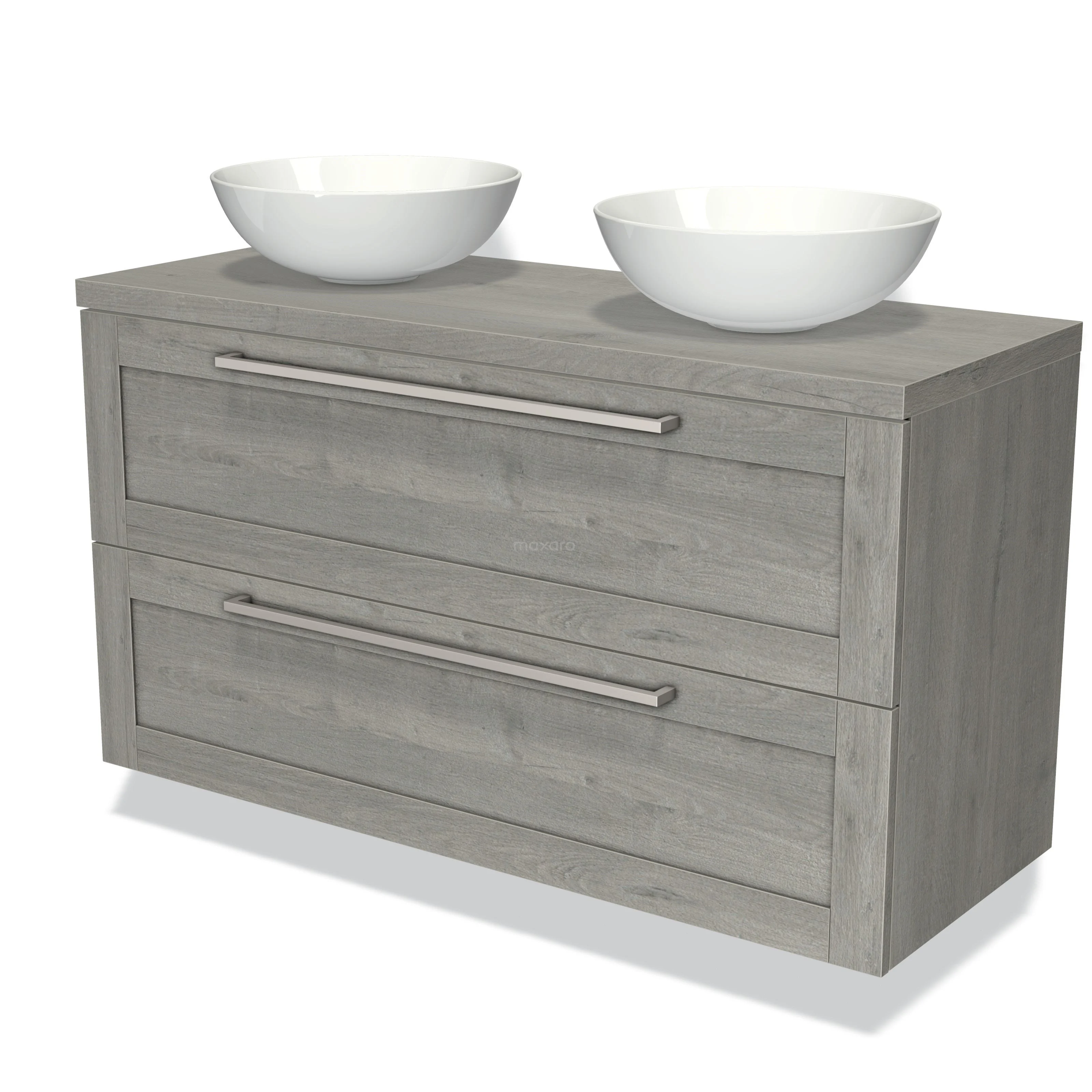 Modulo Plato Vanity units for countertop basin | 120 cm Grey oak Bordered front Grey oak worktop 2 Stacked drawers