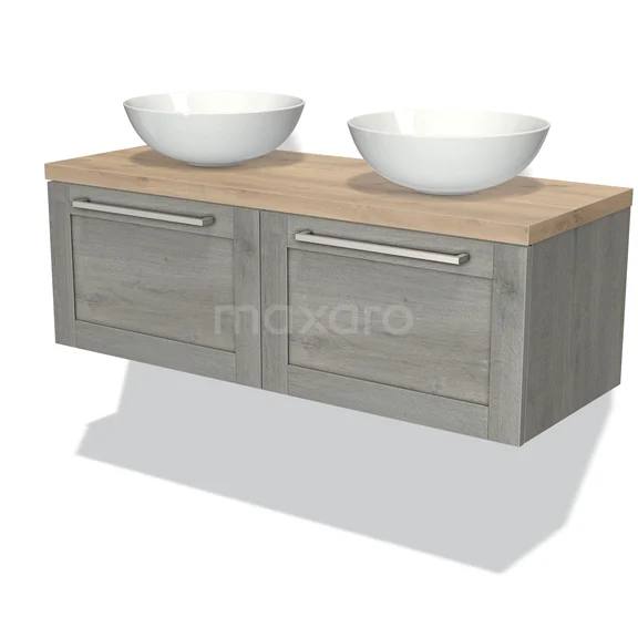 Modulo Plato Vanity units for countertop basin | 120 cm Grey oak Bordered front Light brown oak worktop 2 Side-by-side drawers