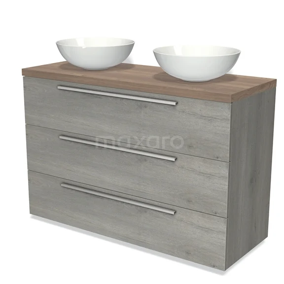 Modulo Plato Vanity units for countertop basin | 120 cm Grey oak Flat front Mid brown oak worktop 3 drawers