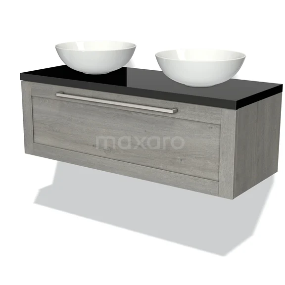Modulo Plato Vanity units for countertop basin | 120 cm Grey oak Frame front High-gloss black worktop 1 drawer