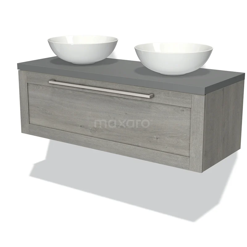 Modulo Plato Vanity units for countertop basin | 120 cm Grey oak Frame front Mid grey worktop 1 drawer