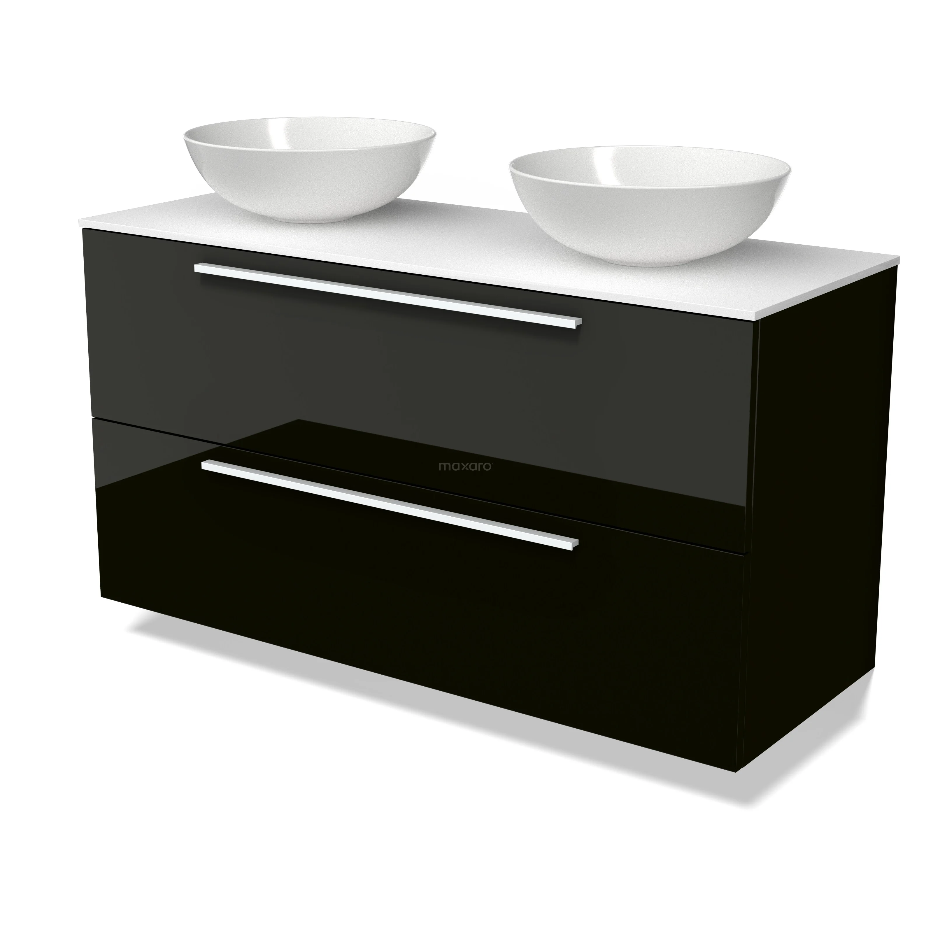 Modulo Plato Vanity units for countertop basin | 120 cm High-gloss black Flat front Solid surface worktop 2 Stacked drawers