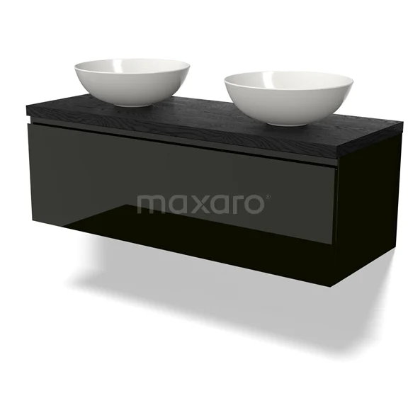Modulo Plato Vanity units for countertop basin | 120 cm High-gloss black Handle-less front Black oak worktop 1 drawer