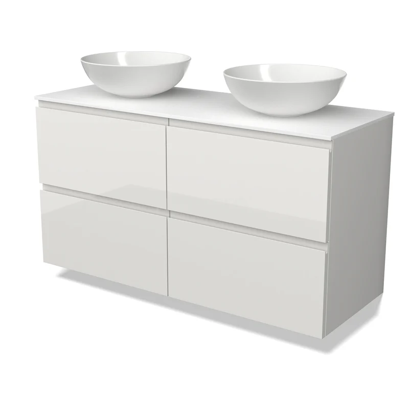 Modulo Plato Vanity units for countertop basin | 120 cm High-gloss white Handle-less front Solid surface worktop 4 drawers