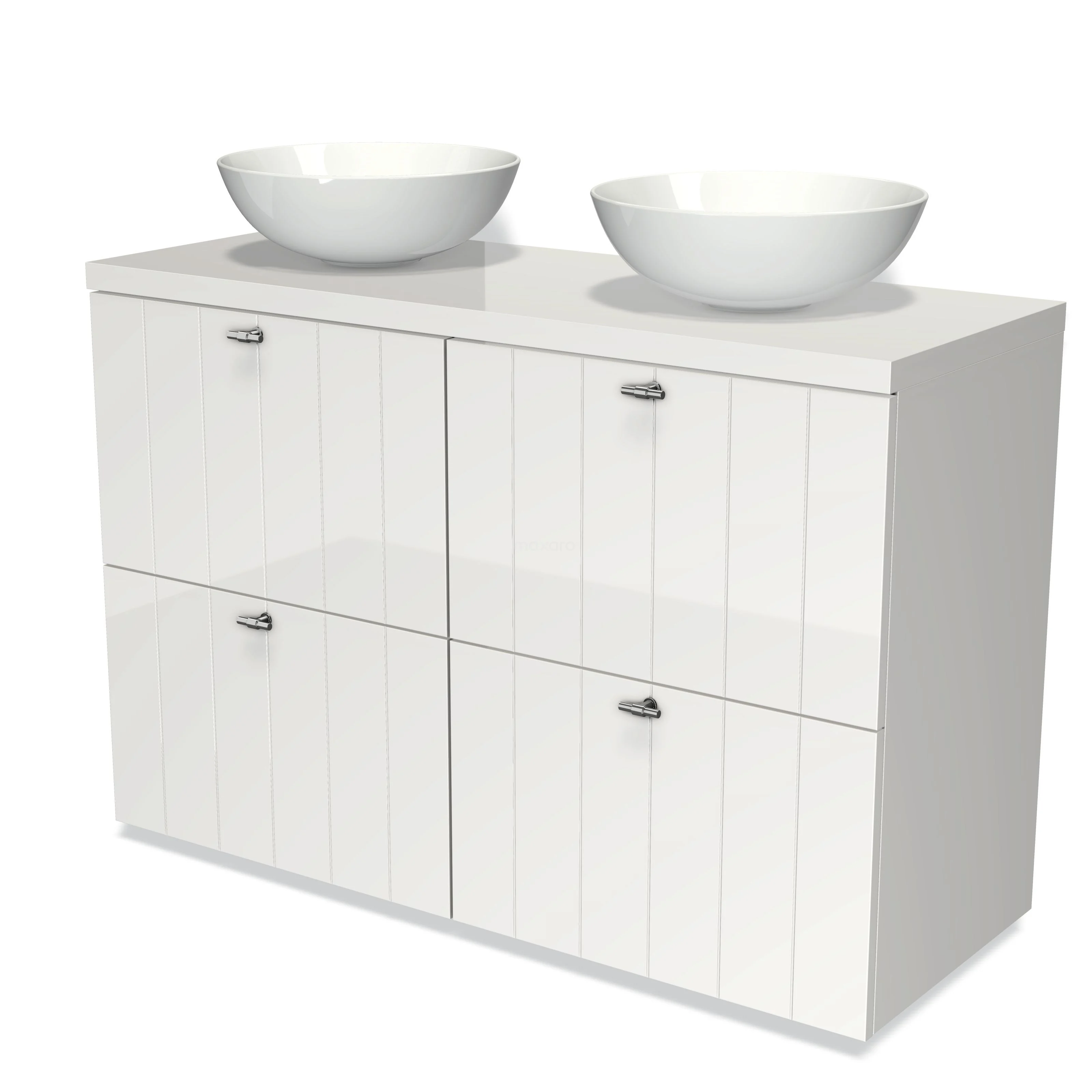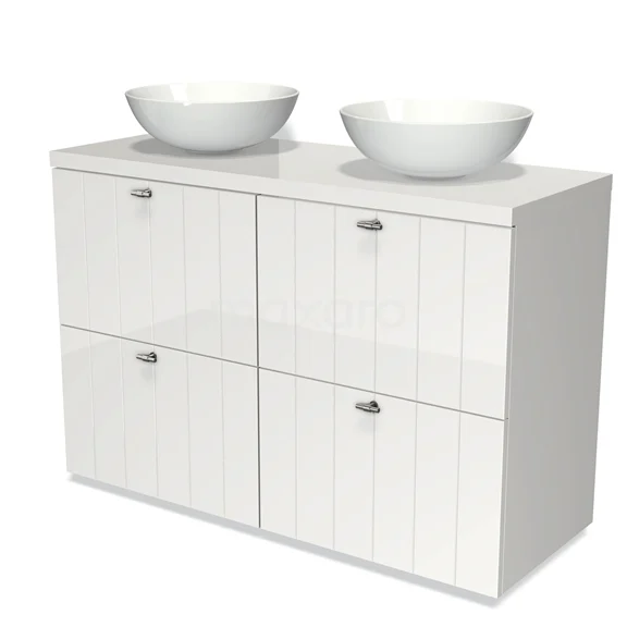 Modulo Plato Vanity units for countertop basin | 120 cm High-gloss white Slat front High-gloss white worktop 4 high drawers