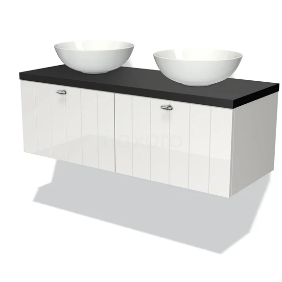 Modulo Plato Vanity units for countertop basin | 120 cm High-gloss white Slat front Matte black worktop 2 Side-by-side drawers