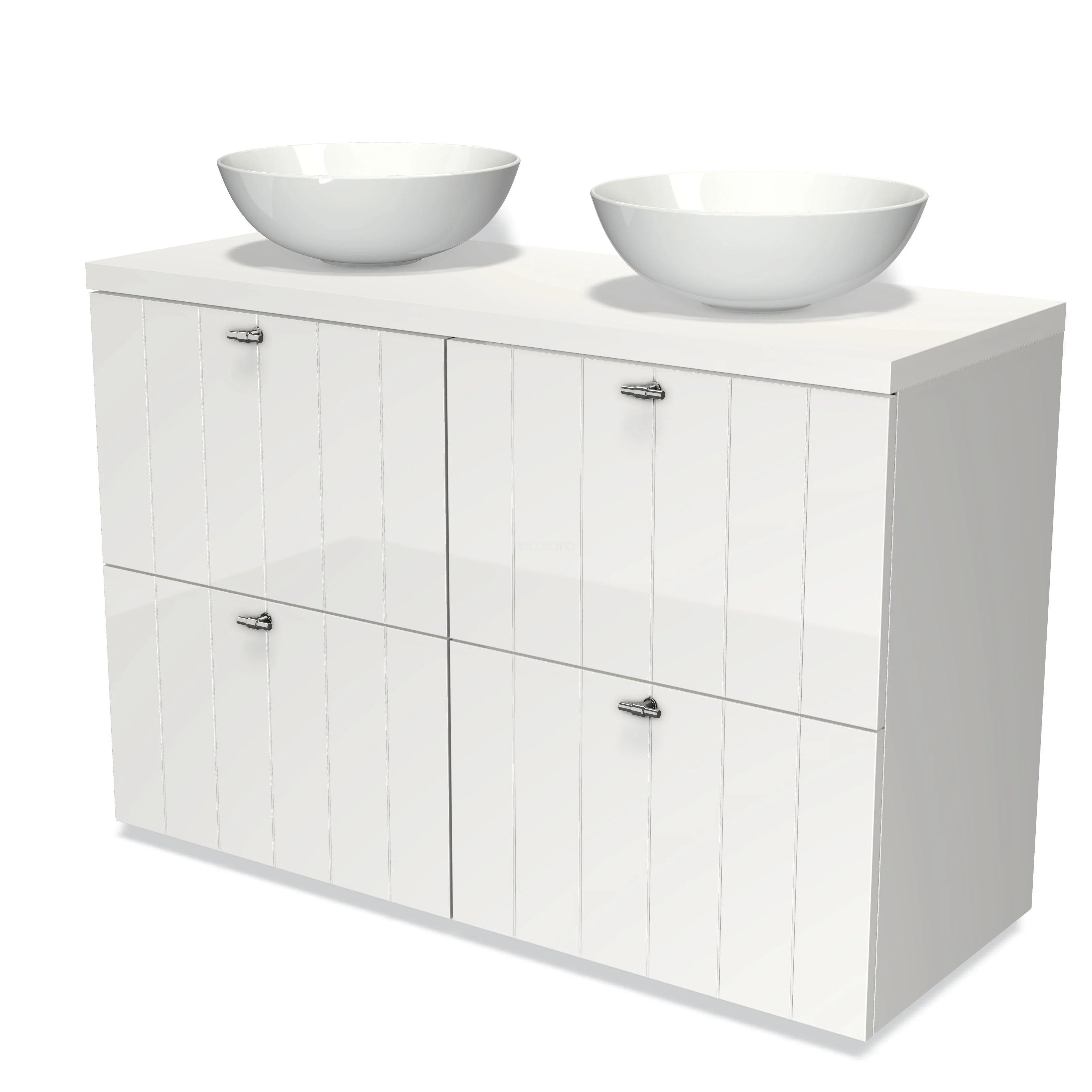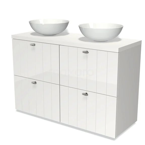 Modulo Plato Vanity units for countertop basin | 120 cm High-gloss white Slat front Matte white worktop 4 high drawers