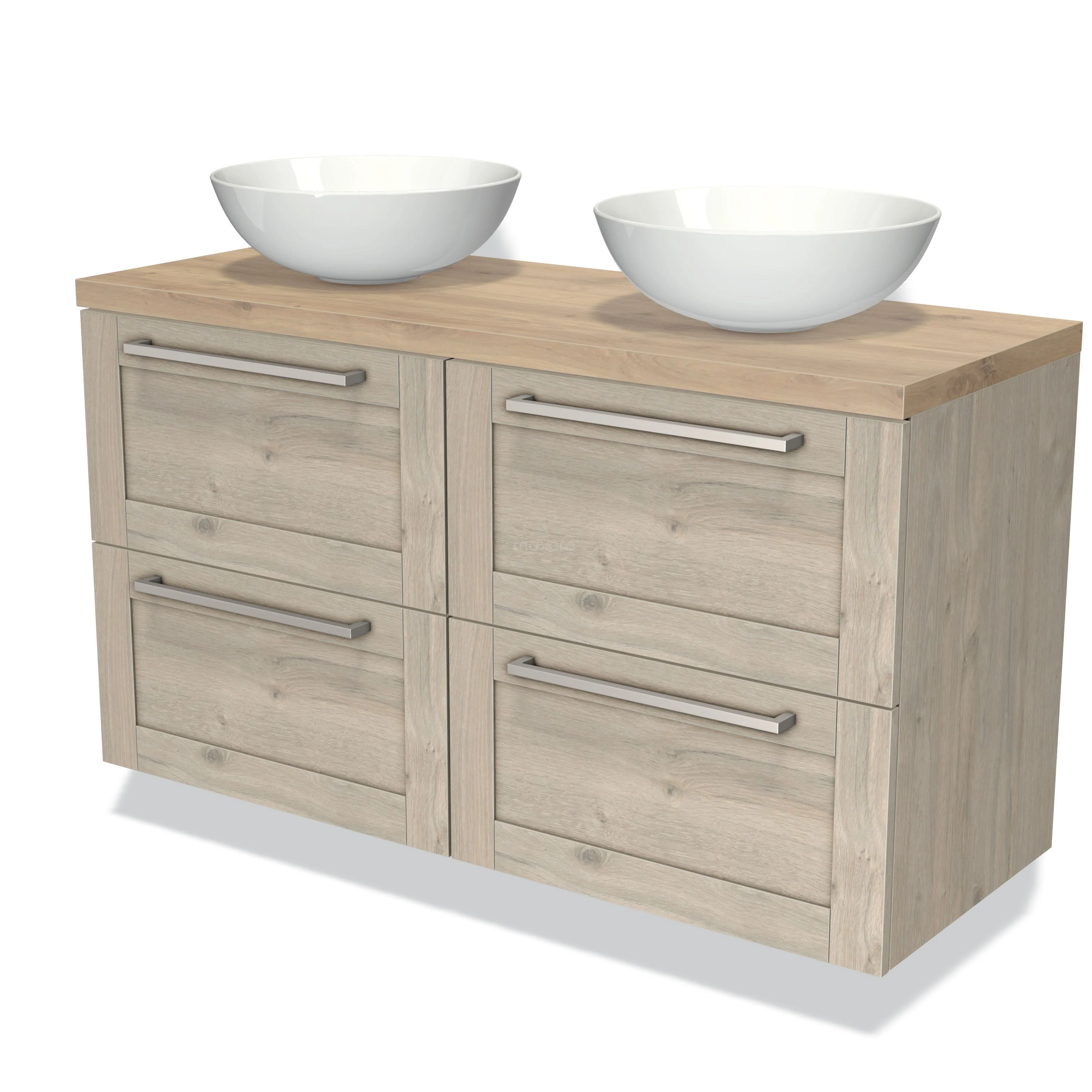 Modulo Plato Vanity units for countertop basin | 120 cm Light grey oak Bordered front Light brown oak worktop 4 drawers
