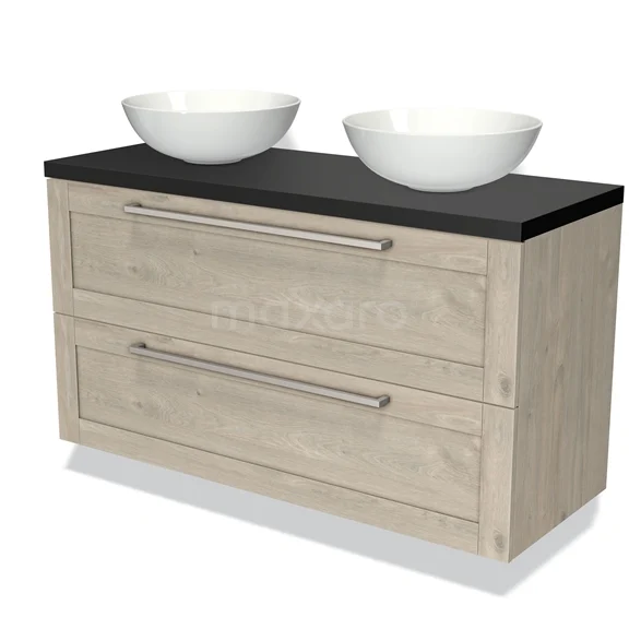 Modulo Plato Vanity units for countertop basin | 120 cm Light grey oak Bordered front Matte black worktop 2 Stacked drawers