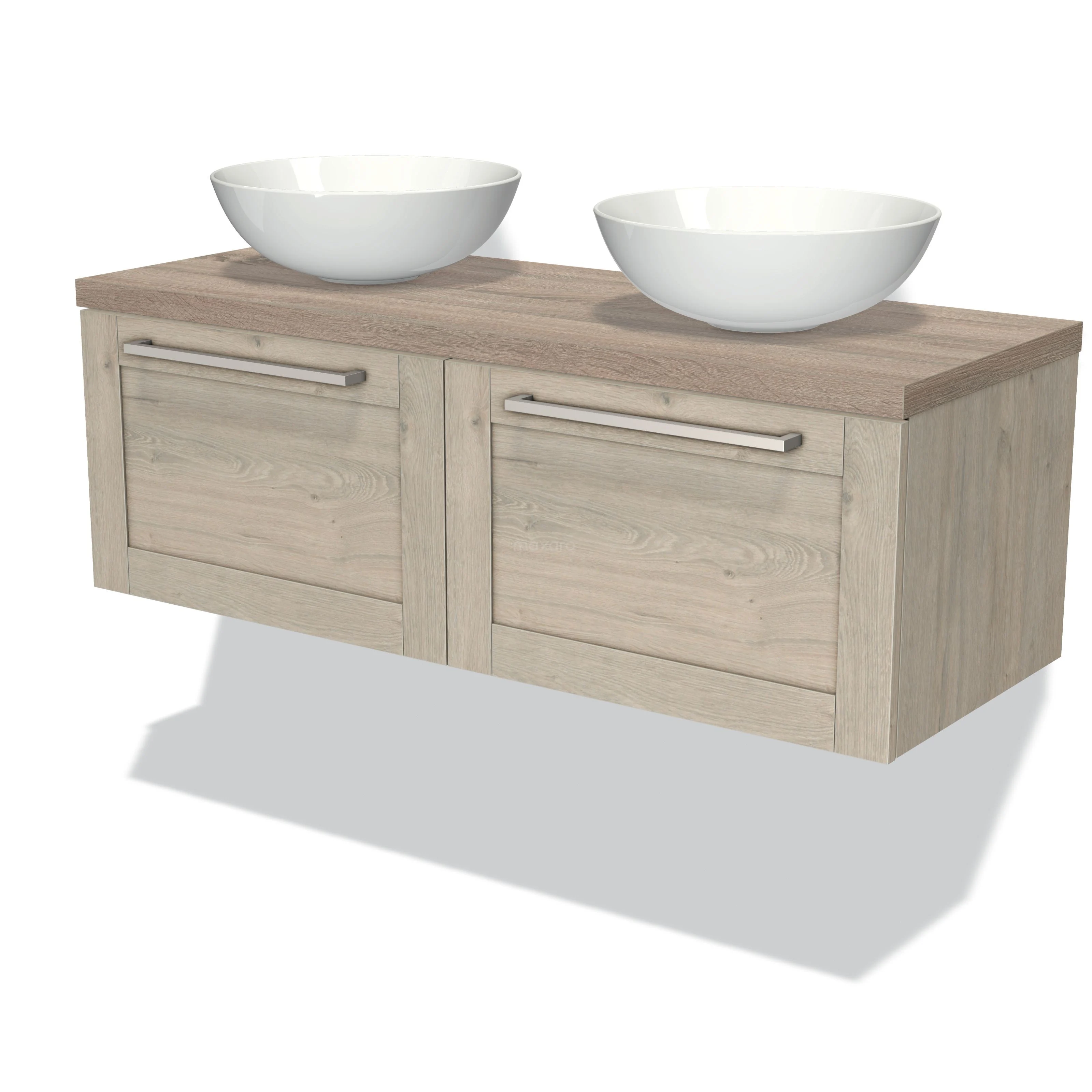 Modulo Plato Vanity units for countertop basin | 120 cm Light grey oak Bordered front Oak worktop 2 Side-by-side drawers