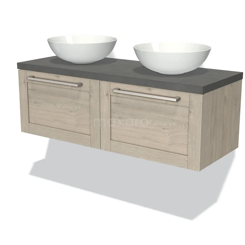 Modulo Plato Vanity units for countertop basin | 120 cm Light grey oak Frame front Dark grey concrete worktop 2 Side-by-side drawers