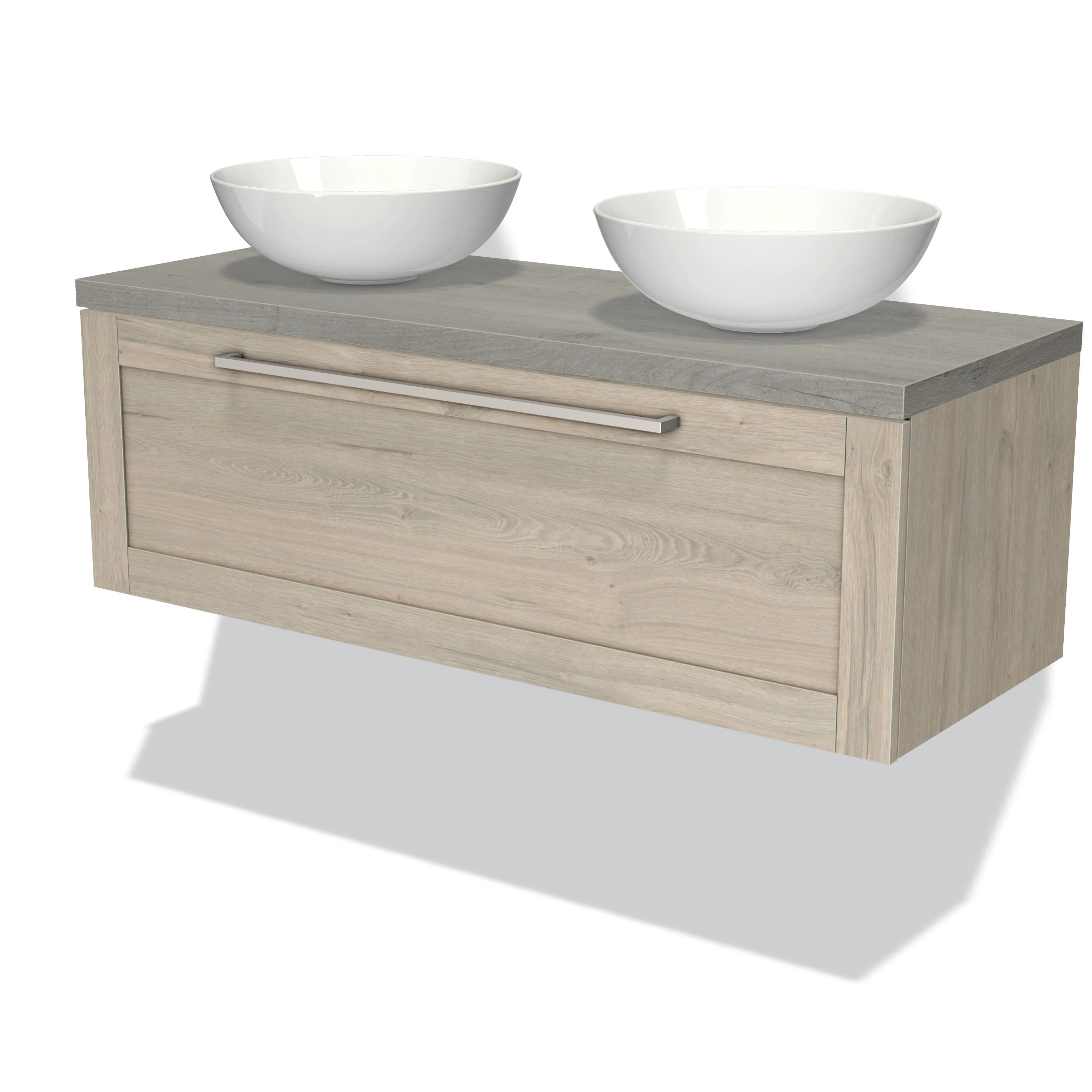 Modulo Plato Vanity units for countertop basin | 120 cm Light grey oak Frame front Grey oak worktop 1 drawer