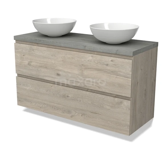Modulo Plato Vanity units for countertop basin | 120 cm Light grey oak Handle-less front Grey oak worktop 2 Stacked drawers