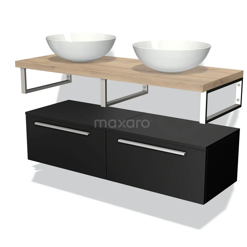 Modulo Plato Vanity units for countertop basin | 120 cm Matte black Flat front Light brown oak worktop Low floating