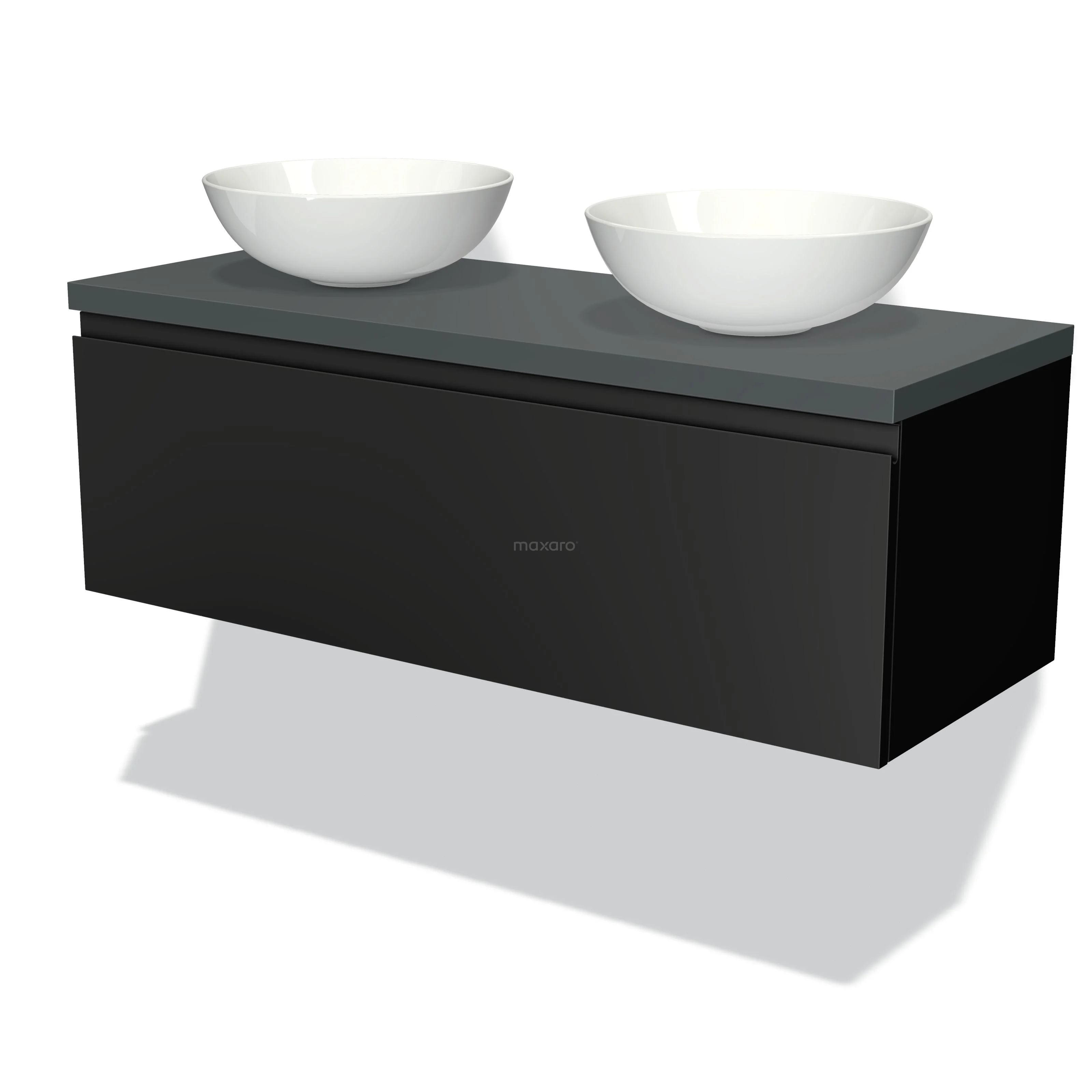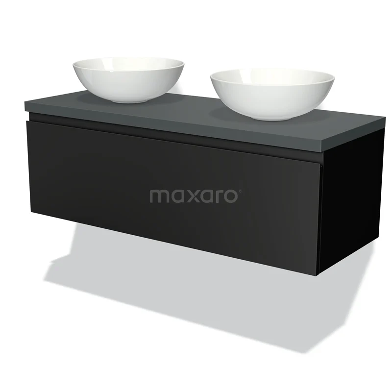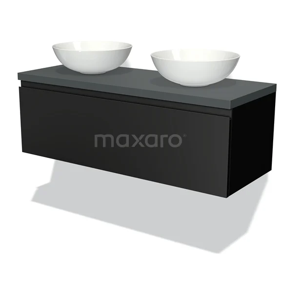 Modulo Plato Vanity units for countertop basin | 120 cm Matte black Handle-less front Dark grey worktop 1 drawer