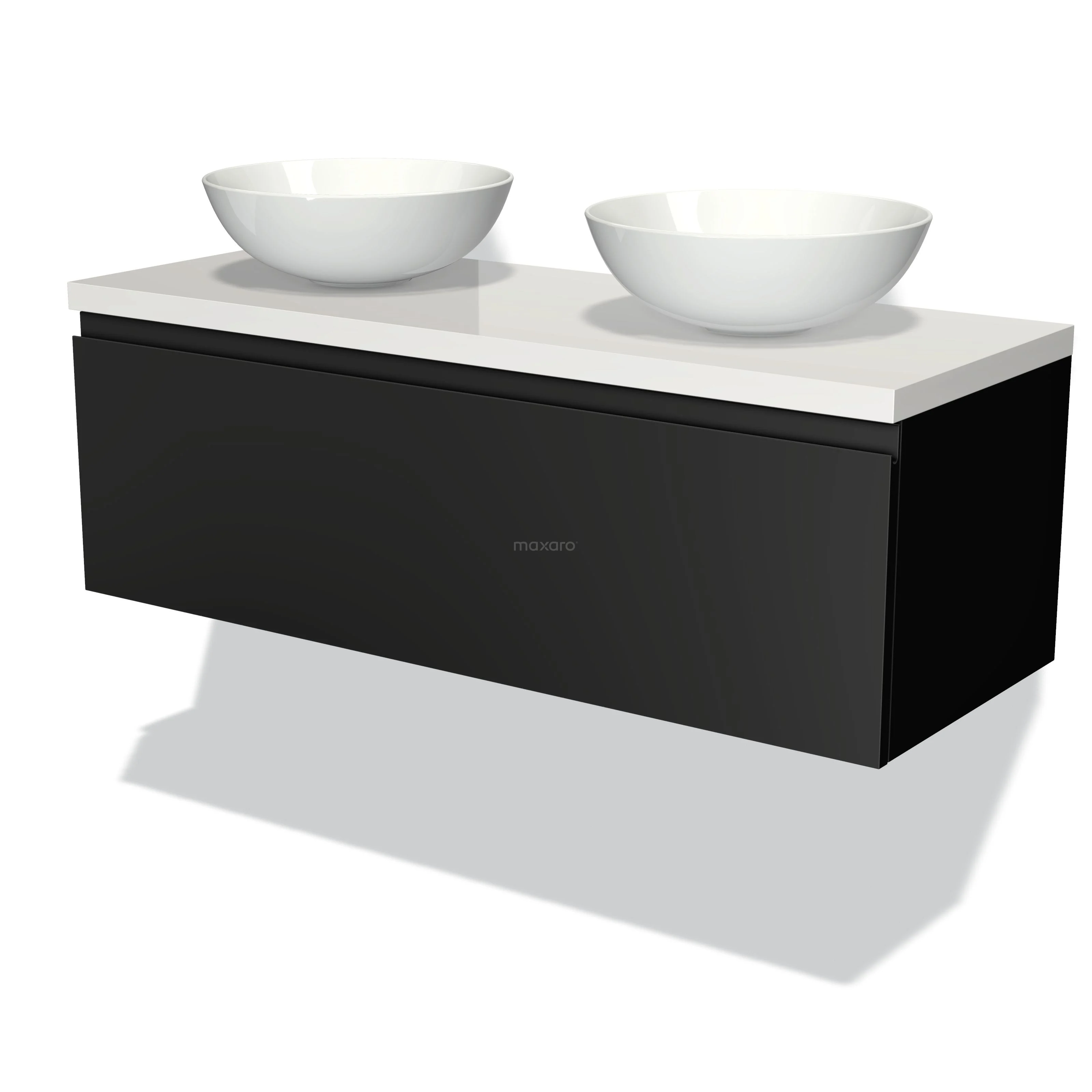 Modulo Plato Vanity units for countertop basin | 120 cm Matte black Handle-less front High-gloss white worktop 1 drawer