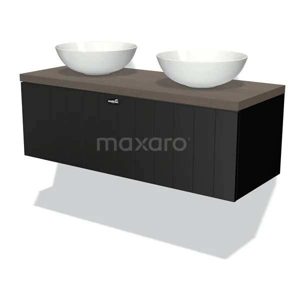 Modulo Plato Vanity units for countertop basin | 120 cm Matte black Slat front Dark brown oak worktop 1 drawer