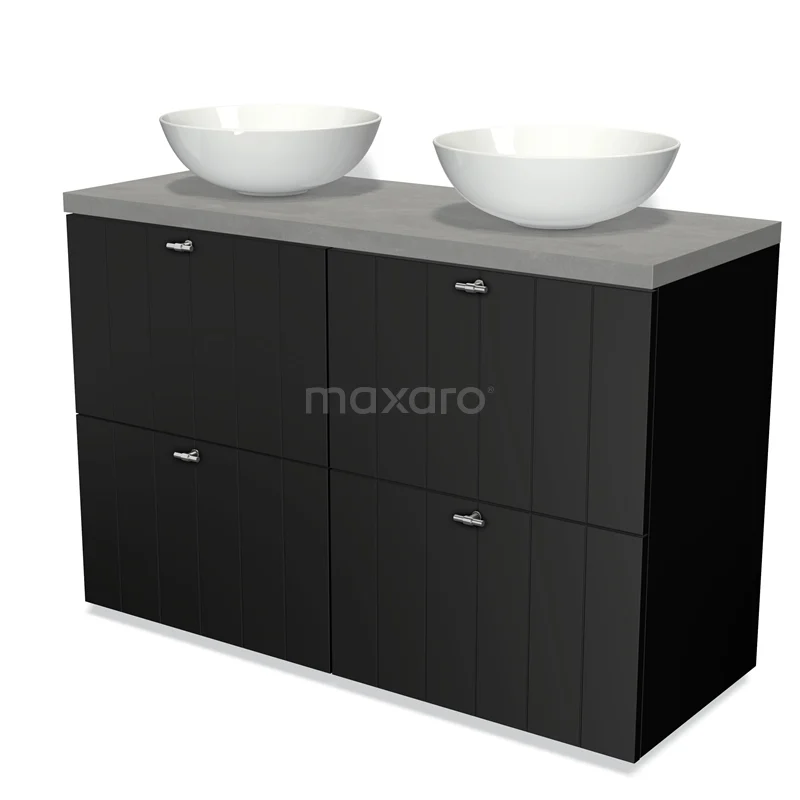 Modulo Plato Vanity units for countertop basin | 120 cm Matte black Slat front Light grey concrete worktop 4 high drawers