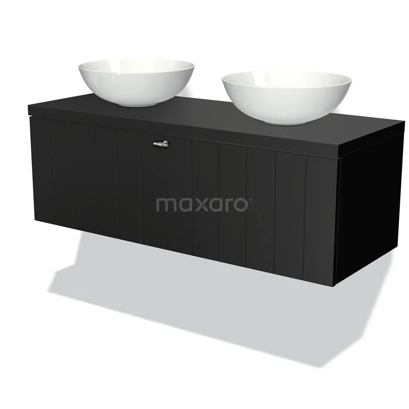 Modulo Plato Vanity units for countertop basin | 120 cm Matte black Slat front Matte black worktop 1 drawer