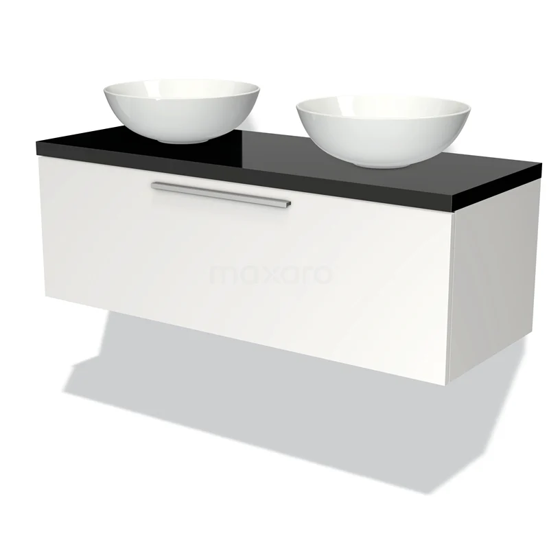 Modulo Plato Vanity units for countertop basin | 120 cm Matte white Flat front High-gloss black worktop 1 drawer
