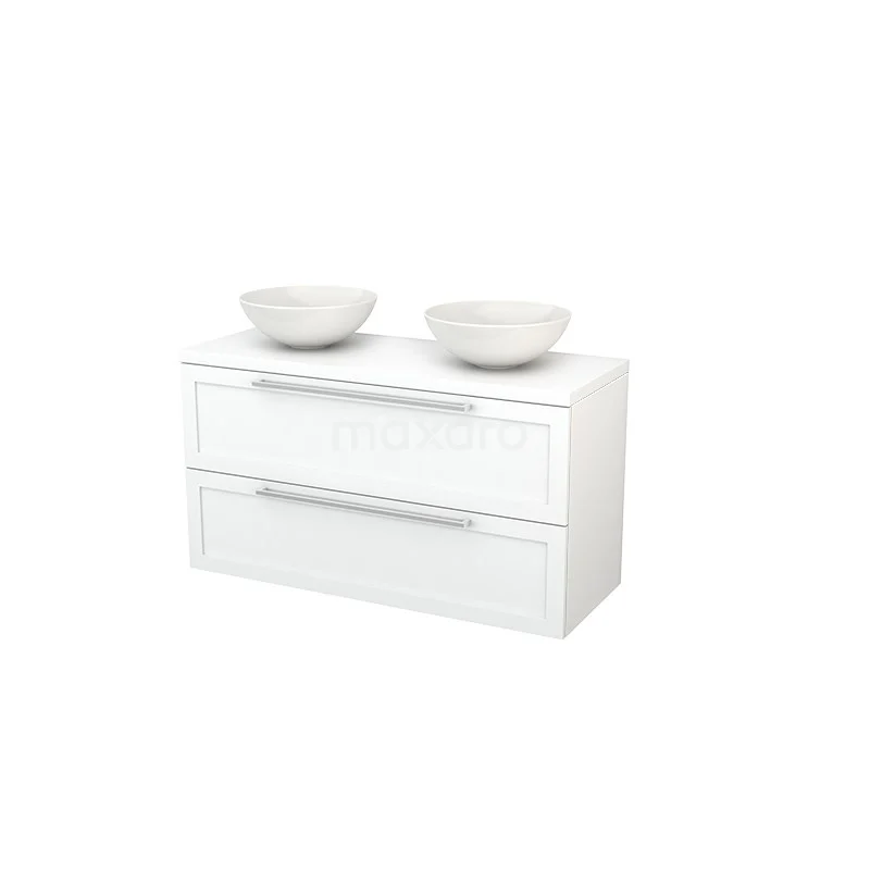 Modulo+ Plato Vanity units for countertop basin | 120 cm Matte white Frame front Matte white worktop 2 Stacked drawers