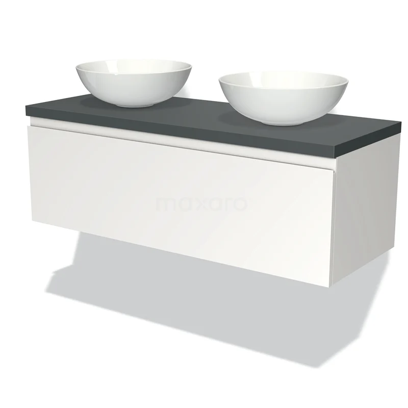 Modulo Plato Vanity units for countertop basin | 120 cm Matte white Handle-less front Dark grey worktop 1 drawer