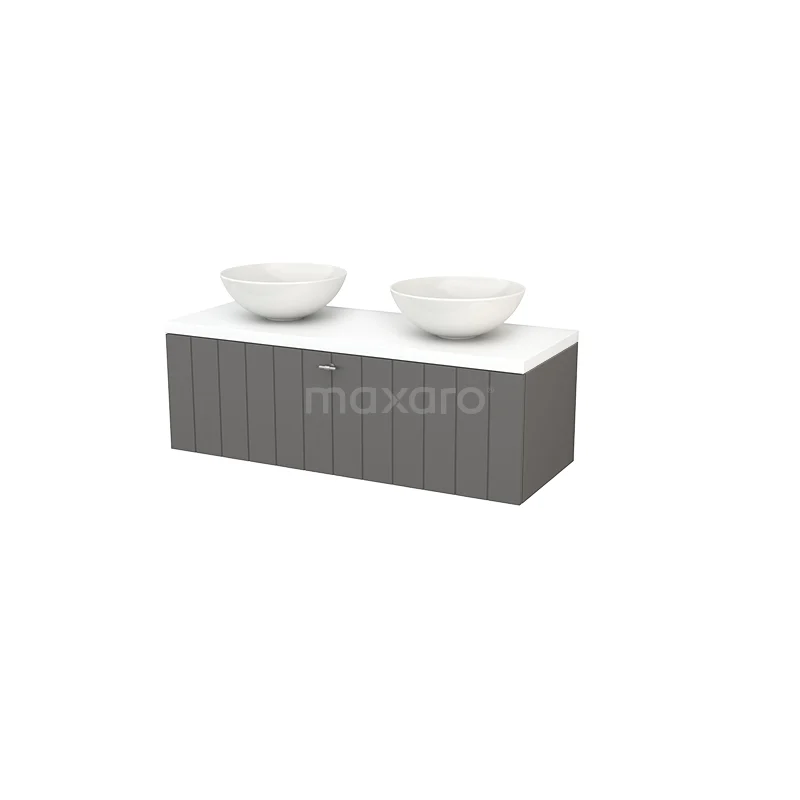 Modulo+ Plato Vanity units for countertop basin | 120 cm Matte white Slat front Matte white worktop 1 drawer