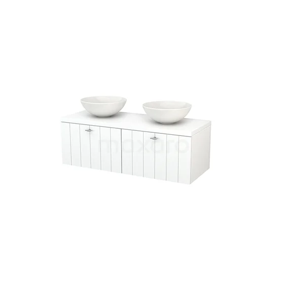 Modulo+ Plato Vanity units for countertop basin | 120 cm Matte white Slat front Matte white worktop 2 Side-by-side drawers