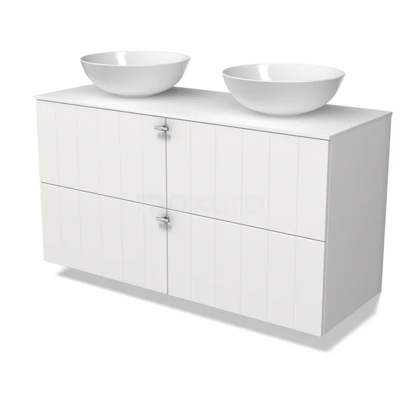 Modulo Plato Vanity units for countertop basin | 120 cm Matte white Slat front Solid surface worktop 4 drawers