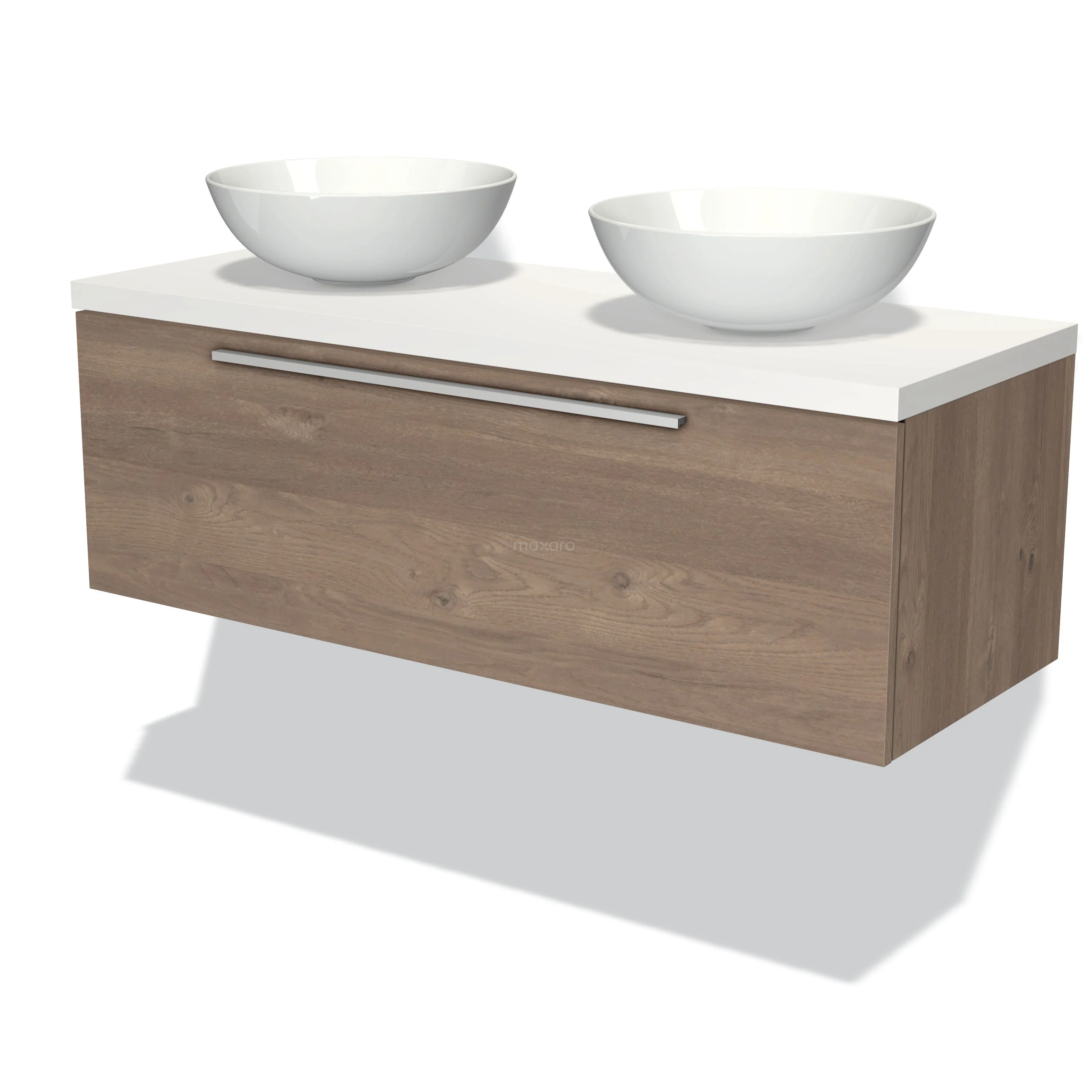 Modulo Plato Vanity units for countertop basin | 120 cm Mid brown oak Flat front Matte white worktop 1 drawer