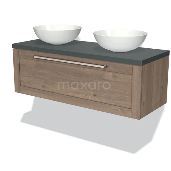 Modulo Plato Vanity units for countertop basin | 120 cm Mid brown oak Frame front Dark grey worktop 1 drawer