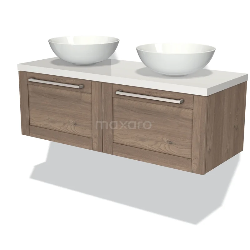 Modulo Plato Vanity units for countertop basin | 120 cm Mid brown oak Frame front High-gloss white worktop 2 Side-by-side drawers