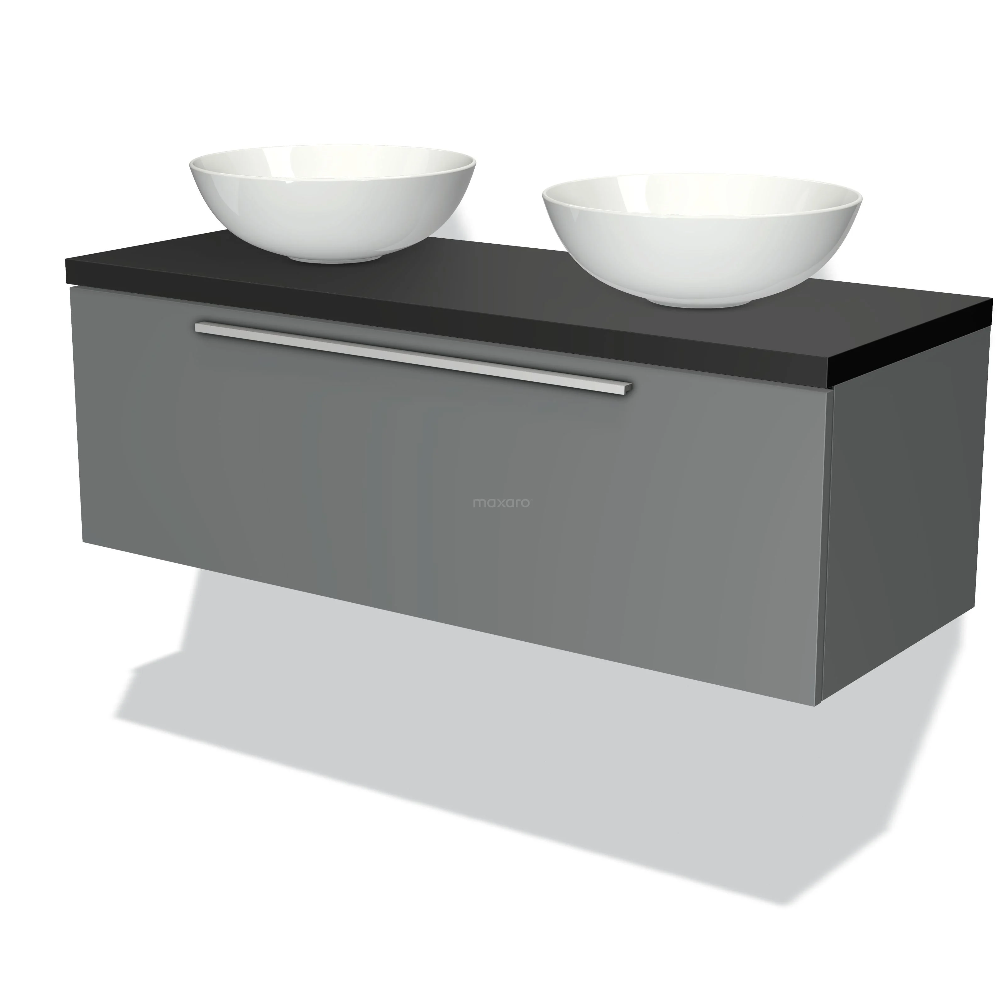 Modulo Plato Vanity units for countertop basin | 120 cm Mid grey Flat front Matte black worktop 1 drawer