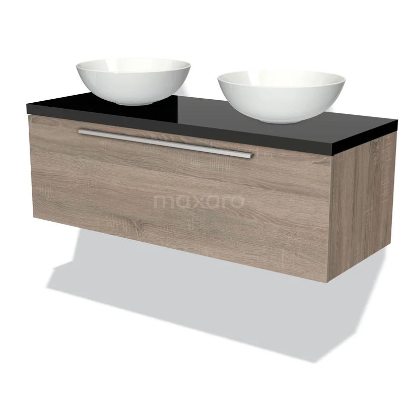 Modulo Plato Vanity units for countertop basin | 120 cm Oak Flat front High-gloss black worktop 1 drawer