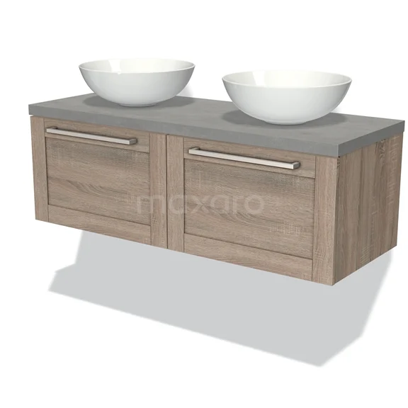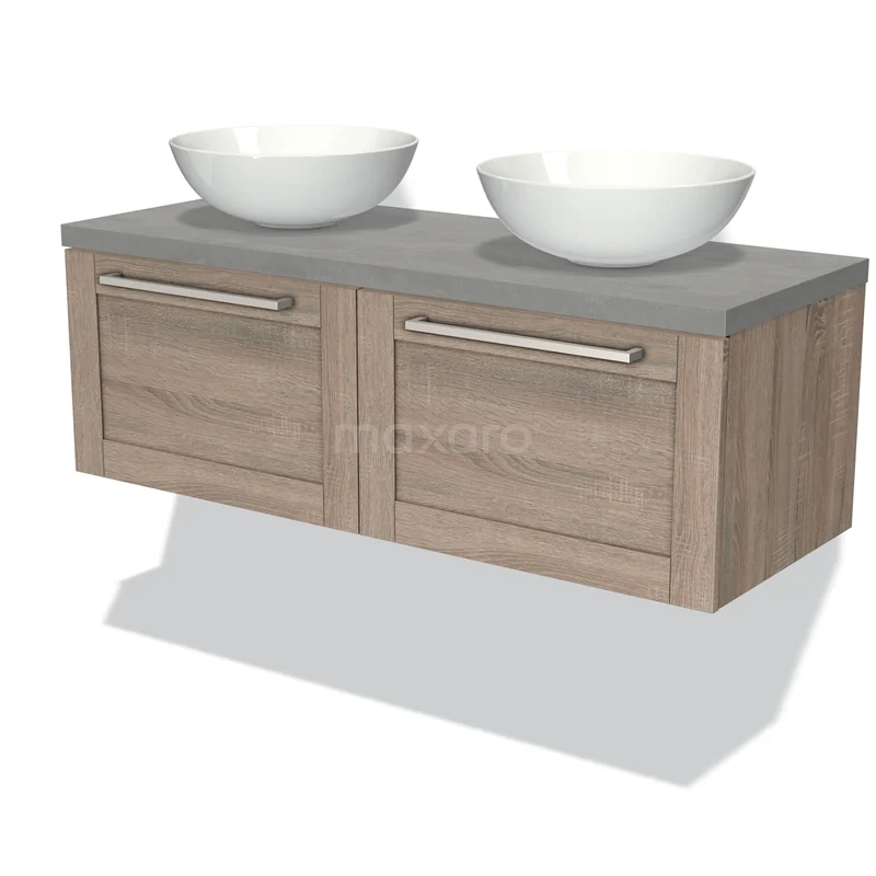 Modulo Plato Vanity units for countertop basin | 120 cm Oak Bordered front Light grey concrete worktop 2 Side-by-side drawers
