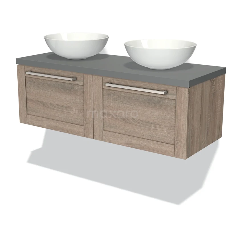 Modulo Plato Vanity units for countertop basin | 120 cm Oak Frame front Mid grey worktop 2 Side-by-side drawers
