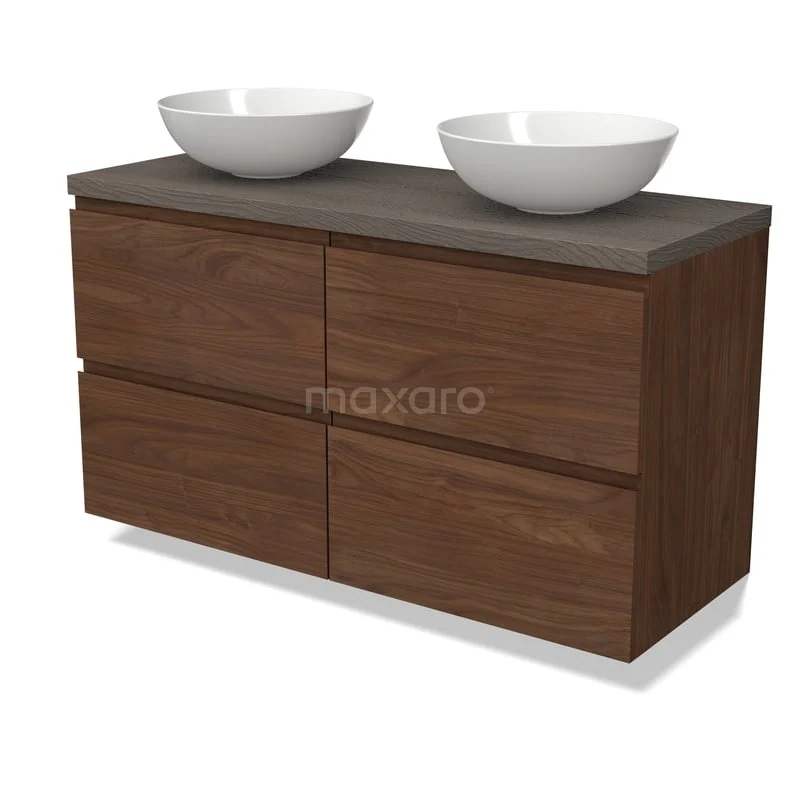 Modulo Plato Vanity units for countertop basin | 120 cm Walnut Handle-less front Dark brown oak worktop 4 drawers