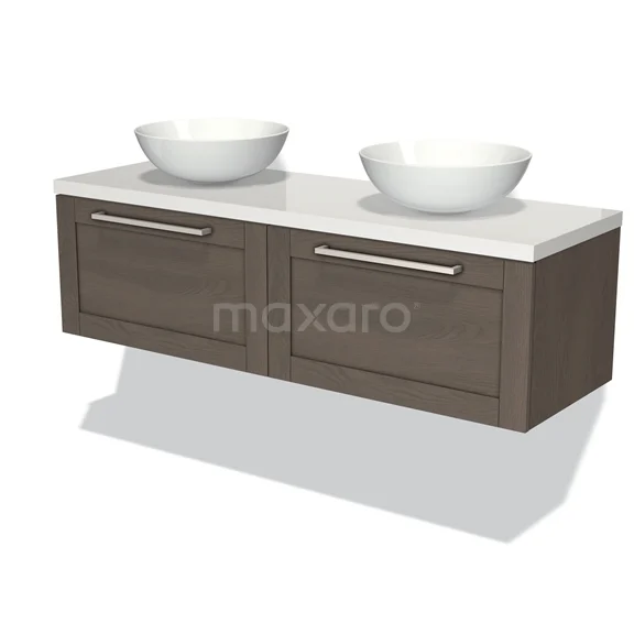 Modulo Plato Vanity units for countertop basin | 140 cm Dark brown oak Frame front High-gloss white worktop 2 Side-by-side drawers