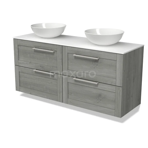 Modulo Plato Vanity units for countertop basin | 140 cm Grey oak Bordered front Solid surface worktop 4 drawers