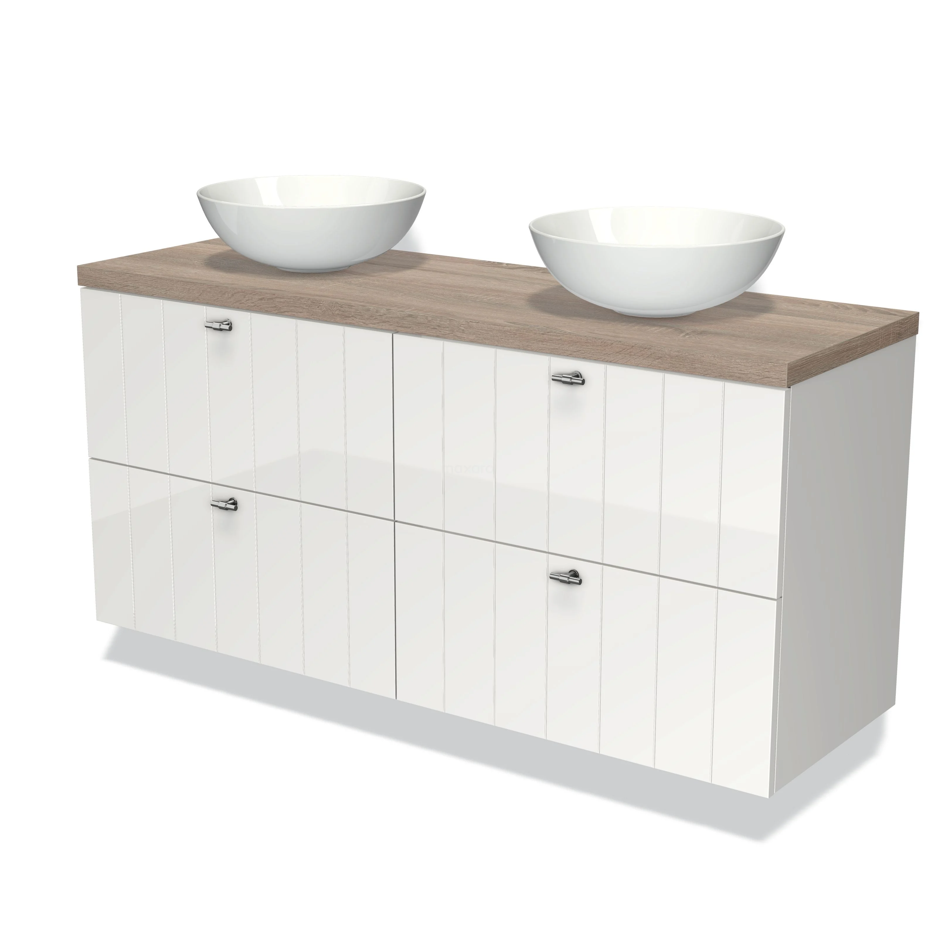 Modulo Plato Vanity units for countertop basin | 140 cm High-gloss white Slat front Oak worktop 4 drawers