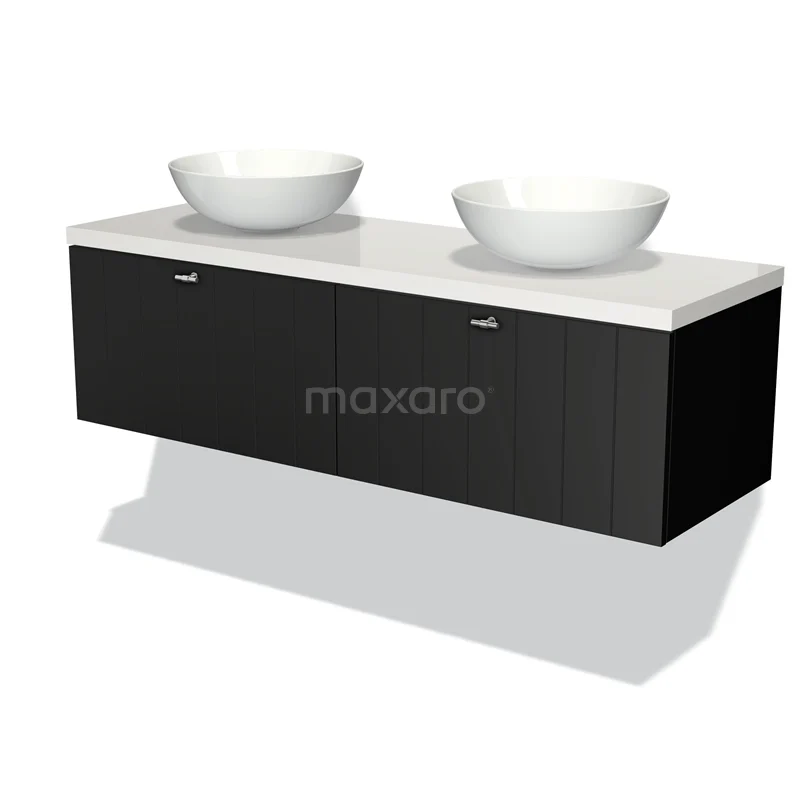 Modulo Plato Vanity units for countertop basin | 140 cm Matte black Slat front High-gloss white worktop 2 Side-by-side drawers