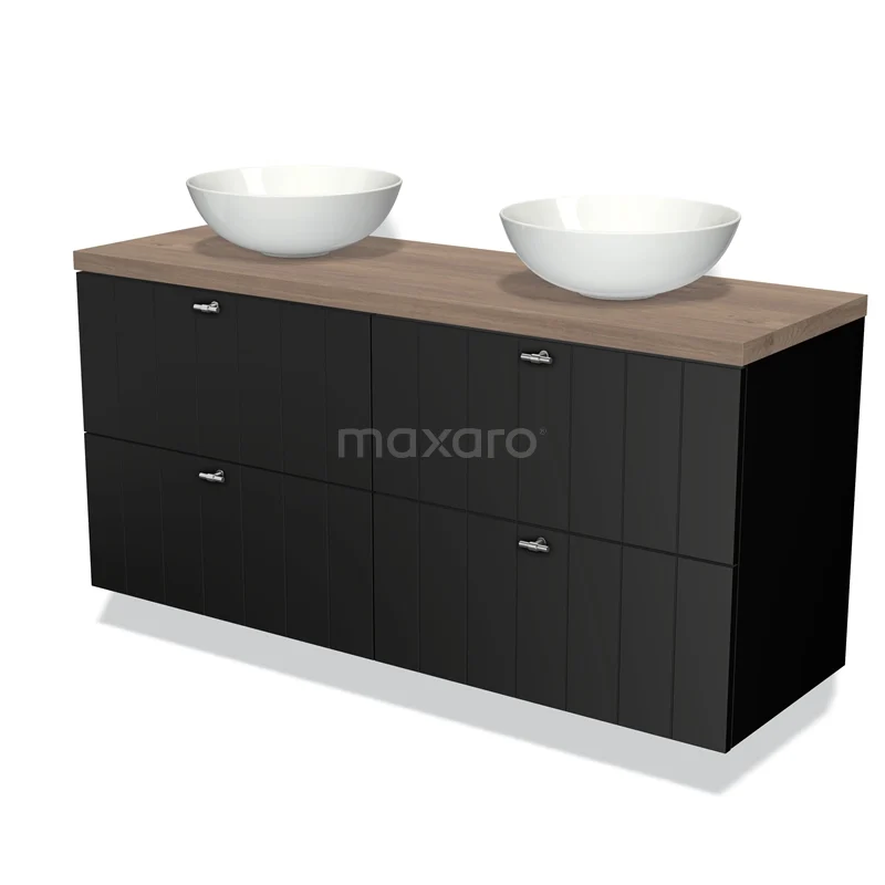Modulo Plato Vanity units for countertop basin | 140 cm Matte black Slat front Mid brown oak worktop 4 drawers