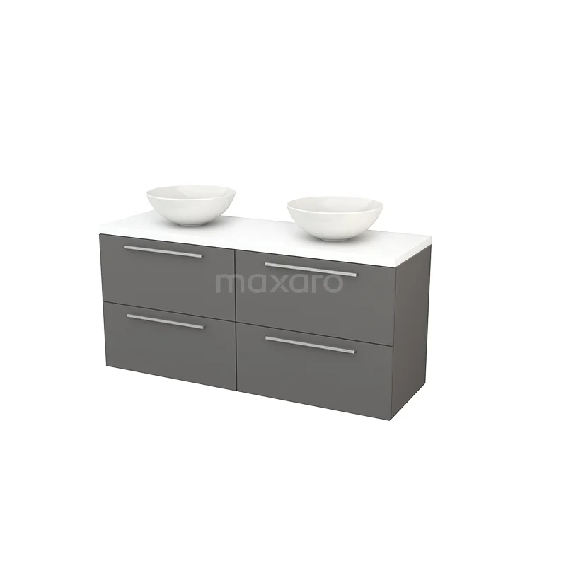 Modulo+ Plato Vanity units for countertop basin | 140 cm Matte white Flat front Matte white worktop 4 drawers