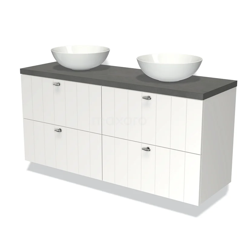 Modulo Plato Vanity units for countertop basin | 140 cm Matte white Slat front Dark grey concrete worktop 4 drawers