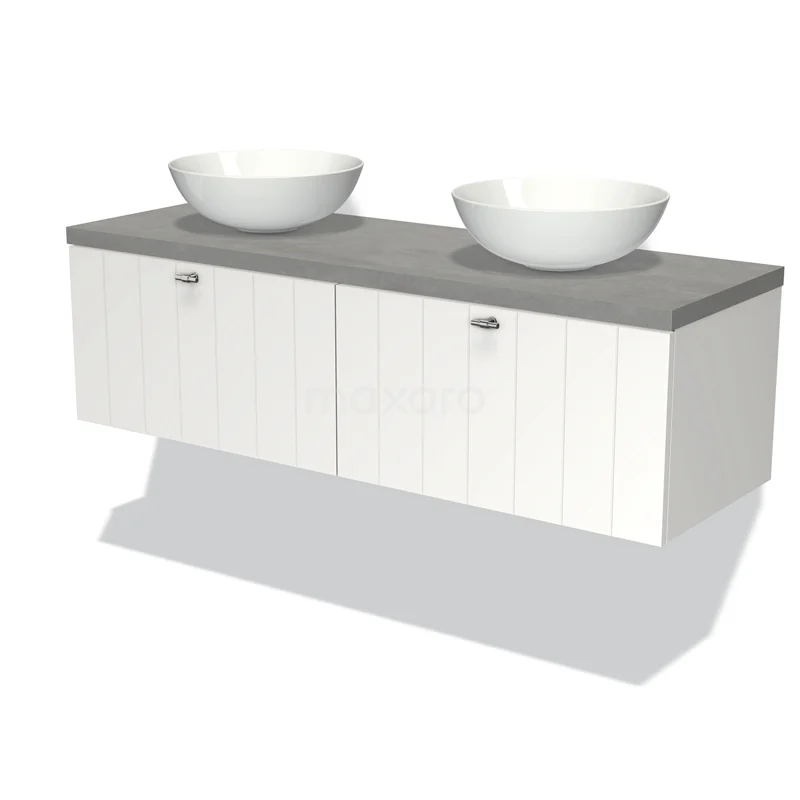 Modulo Plato Vanity units for countertop basin | 140 cm Matte white Slat front Light grey concrete worktop 2 Side-by-side drawers
