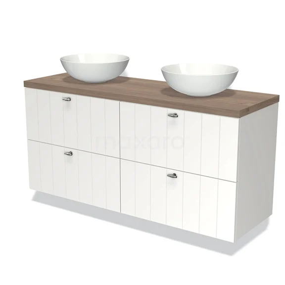 Modulo Plato Vanity units for countertop basin | 140 cm Matte white Slat front Mid brown oak worktop 4 drawers