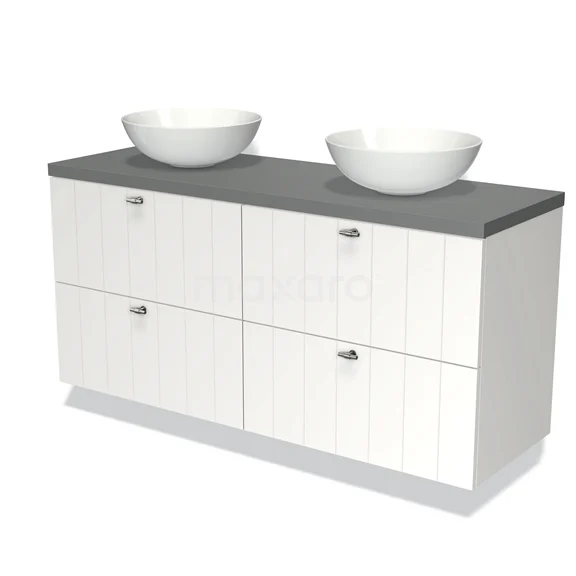 Modulo Plato Vanity units for countertop basin | 140 cm Matte white Slat front Mid grey worktop 4 drawers