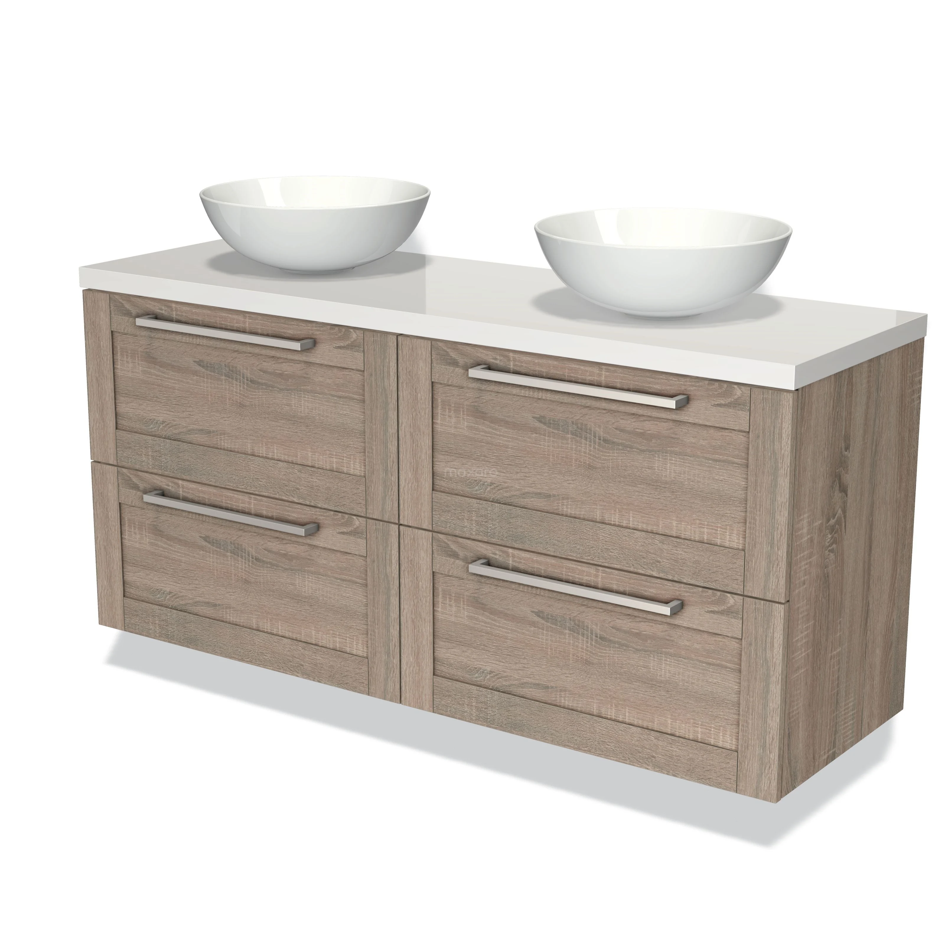 Modulo Plato Vanity units for countertop basin | 140 cm Oak Bordered front High-gloss white worktop 4 drawers